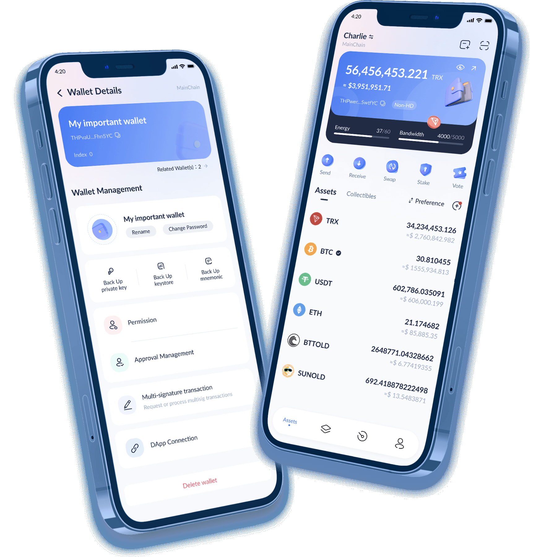 移动端应用,浏览器插件全面覆盖,轻松切换,自由管理。适应您的不同使用场景及需求,随时随地玩转波场TRON应用。